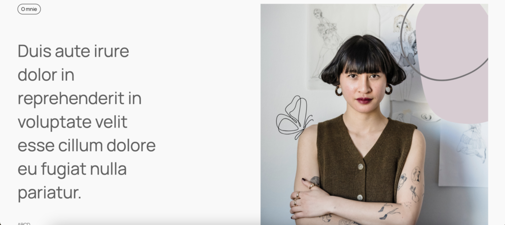 Projekt strony internetowej typu one-page dla artystki, projektantki lub architektki. Rysunkowe elementy nawiązują do kreatywności i indywidualności.
