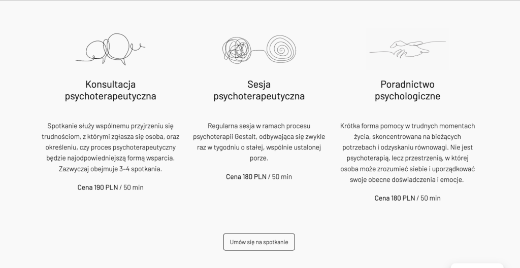 A do najważniejszych pytań, które zadaje sobie użytkownik na stronie psychoterapeuty jest: ‘co możesz dla mnie zrobić?’ oraz ‘czy mogę Ci zaufać?’.